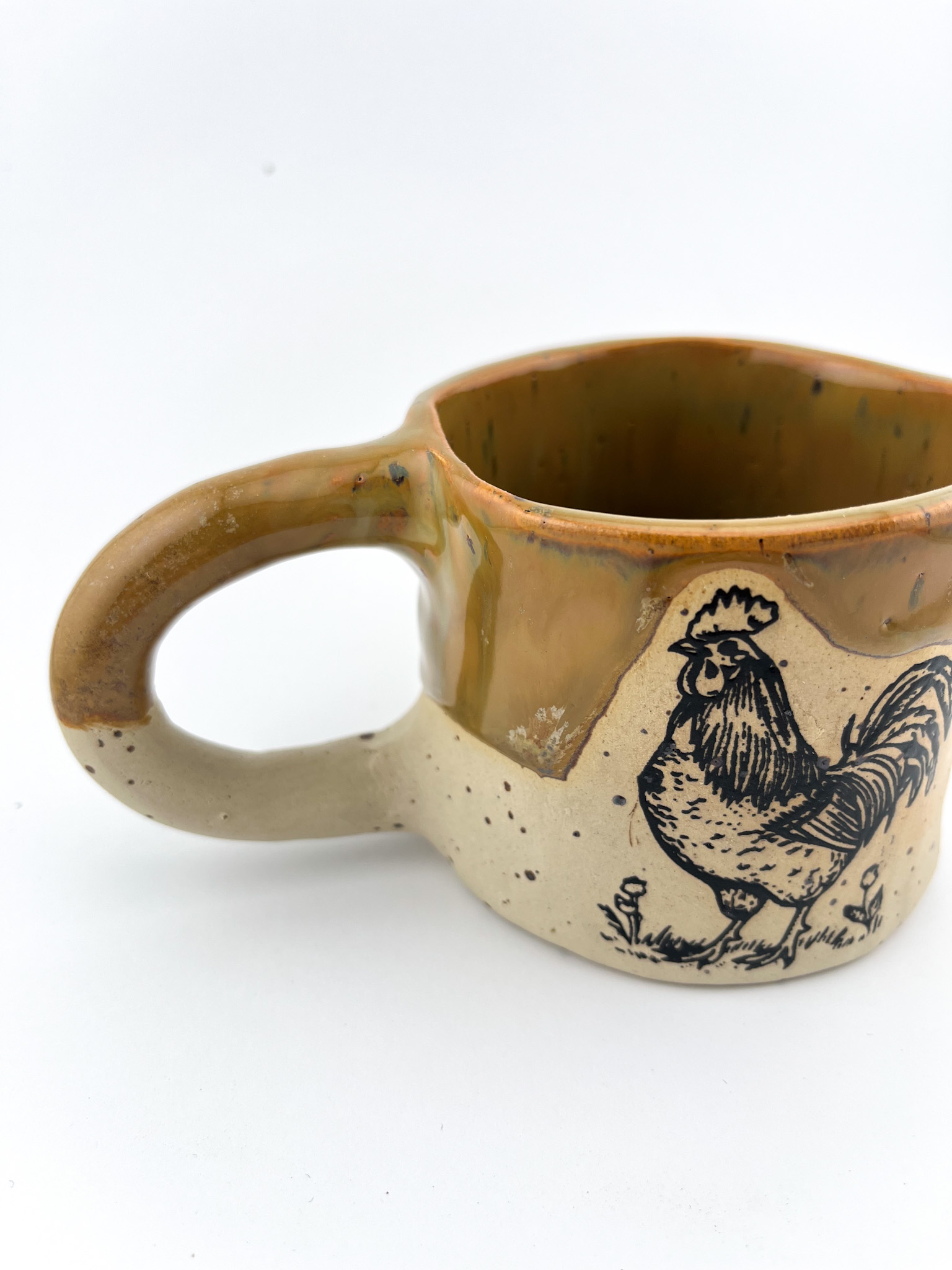 Wprowadź sielski klimat do swojej kuchni! Ten ręcznie formowany kubek to połączenie tradycyjnego rzemiosła z nowoczesną techniką zdobienia. Wyrazisty motyw koguta nadaje mu niepowtarzalnego, wiejskiego charakteru w najlepszym wydaniu.