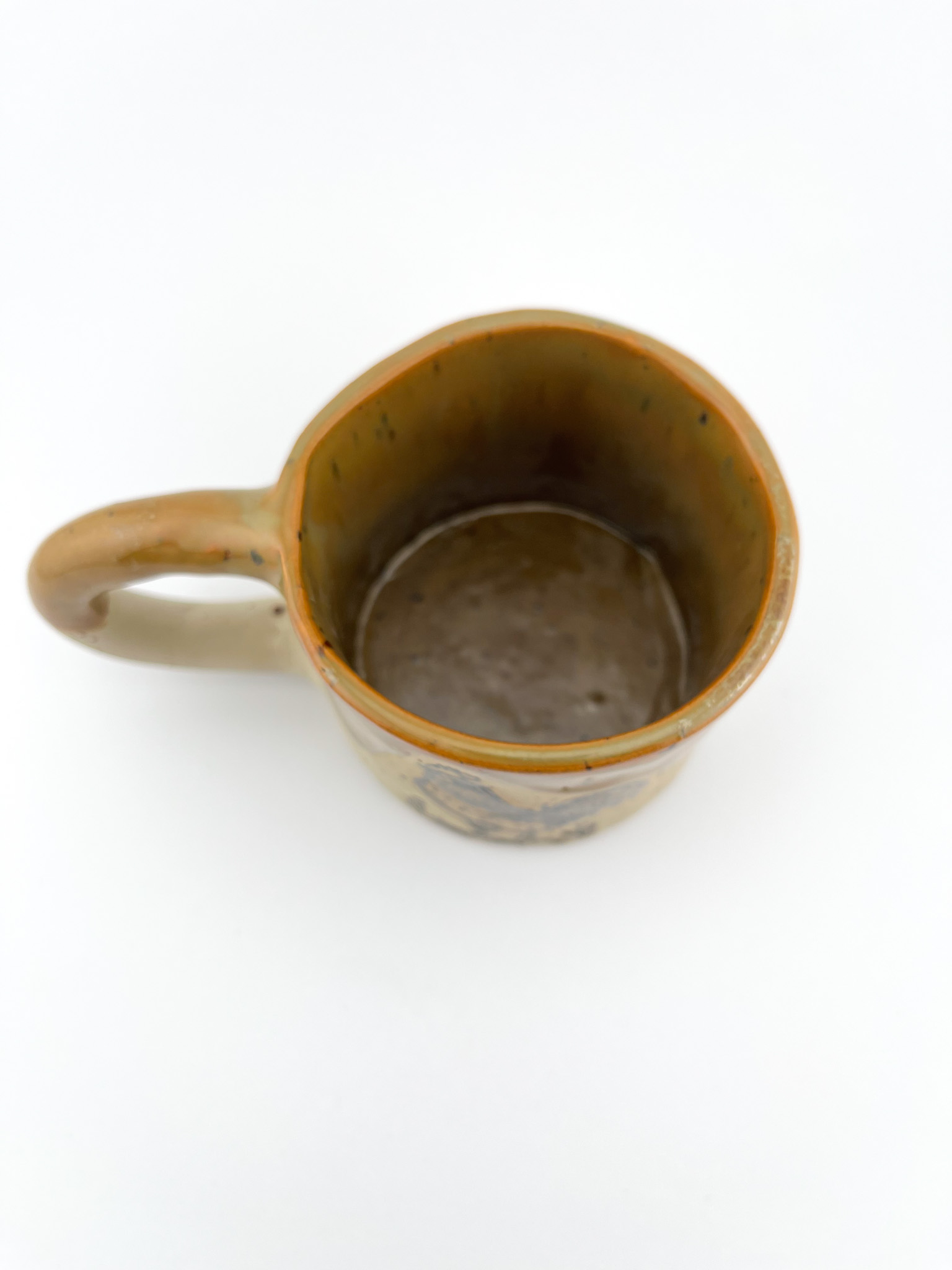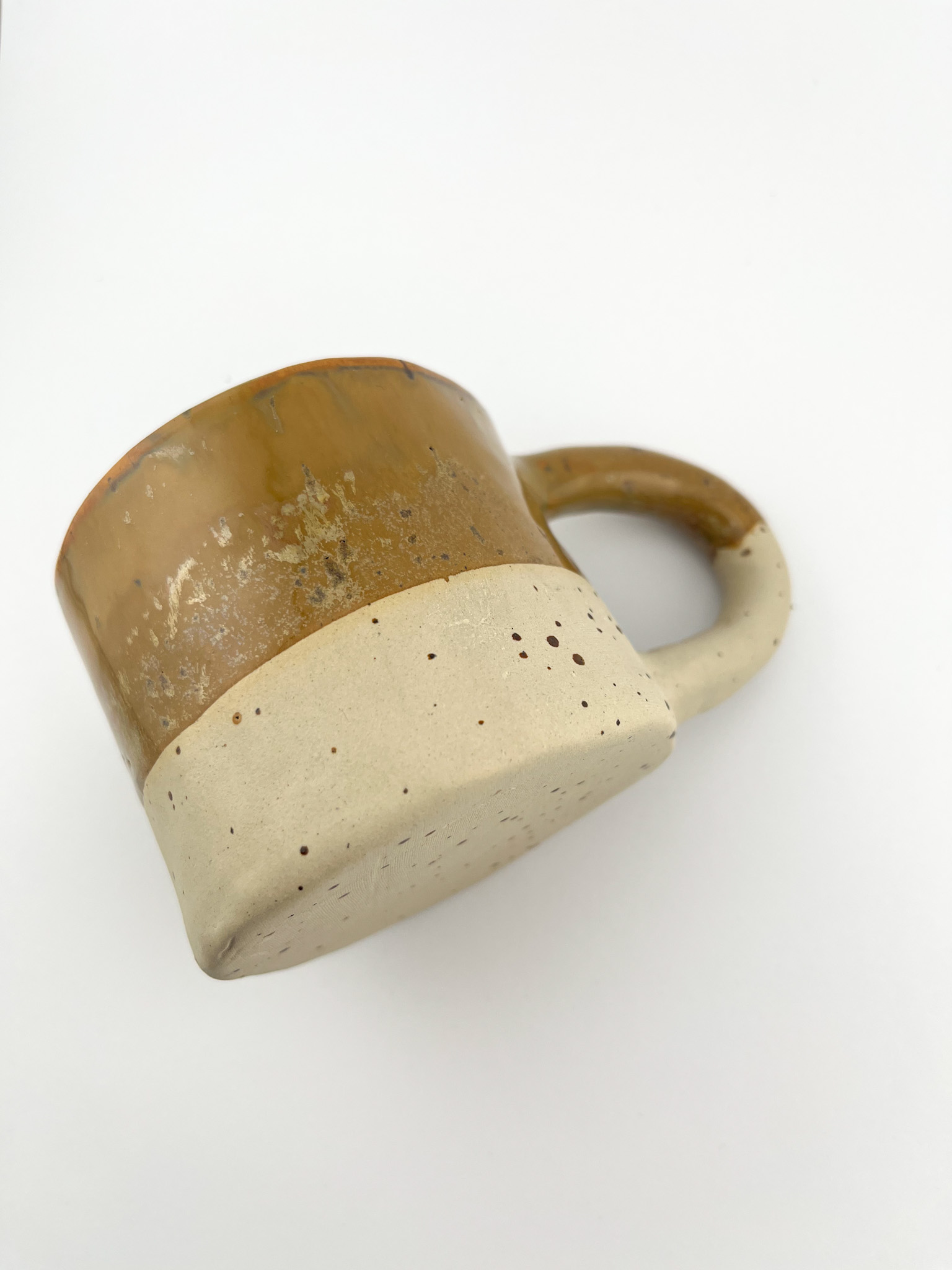 - Dwukolorowe Szkliwienie: Kubek zachwyca grą kolorów – górna część wykończona jest ciepłym, miodowym brązem, który płynnie przechodzi w naturalny, nakrapiany beż dolnej części.