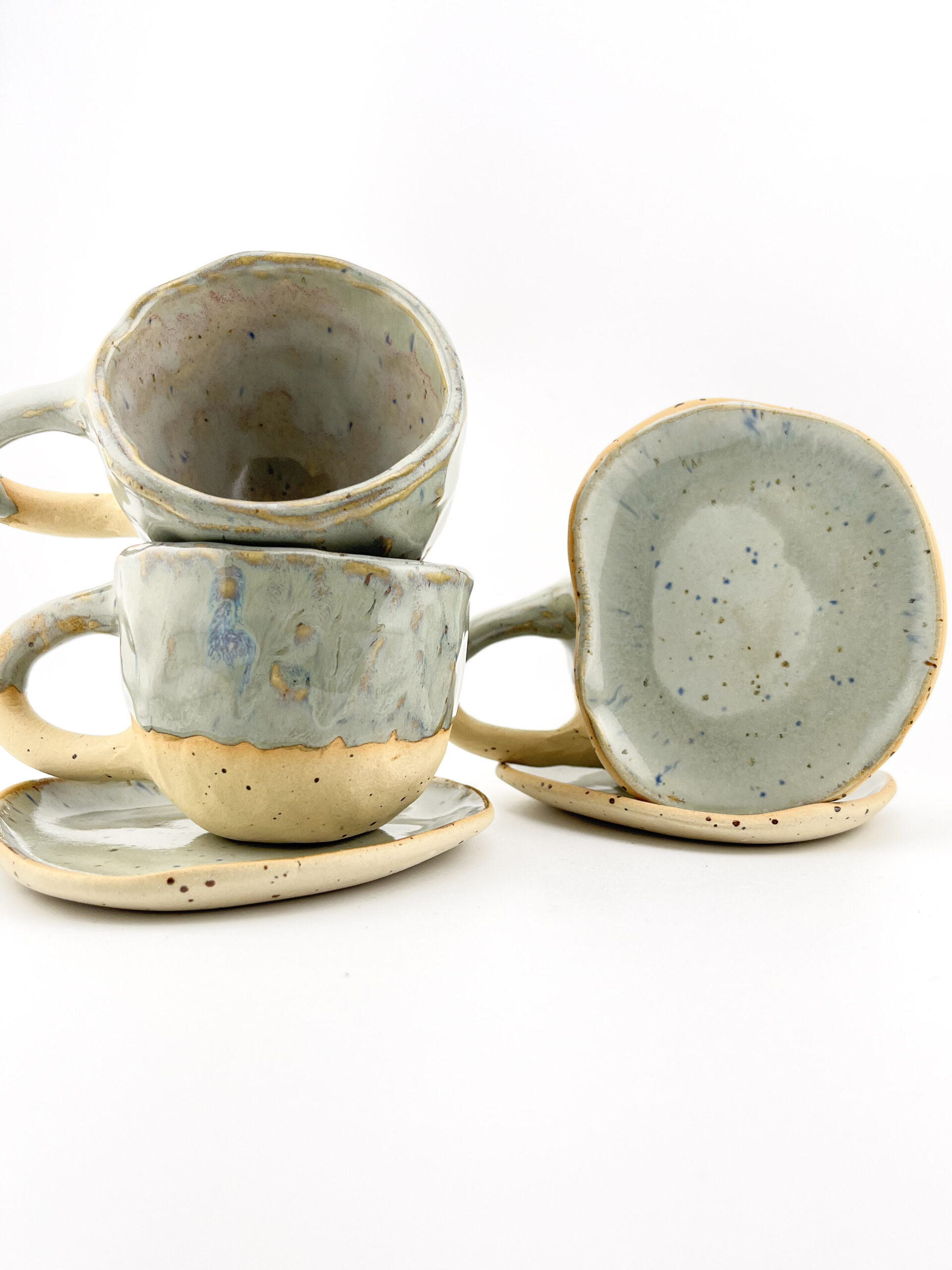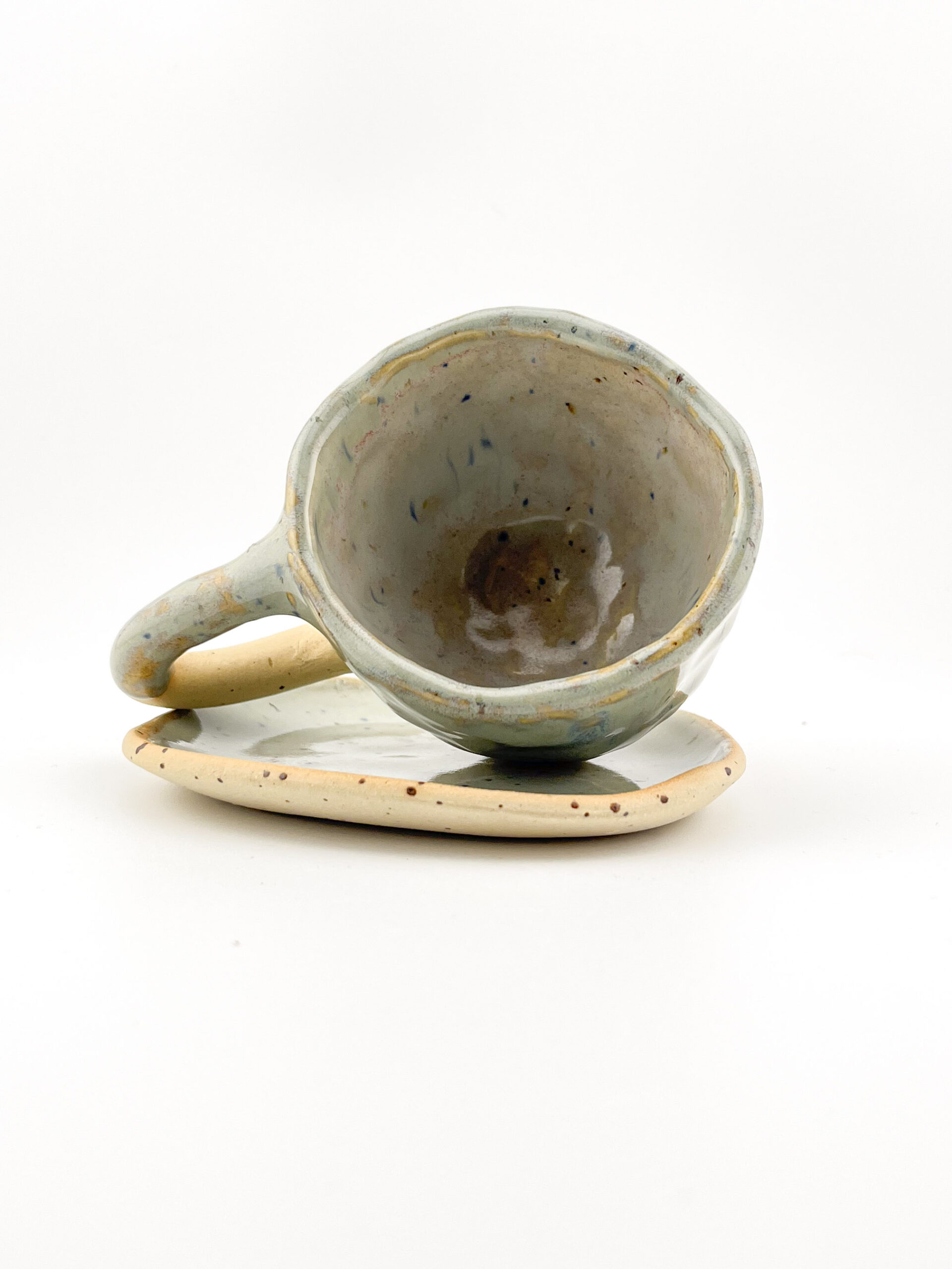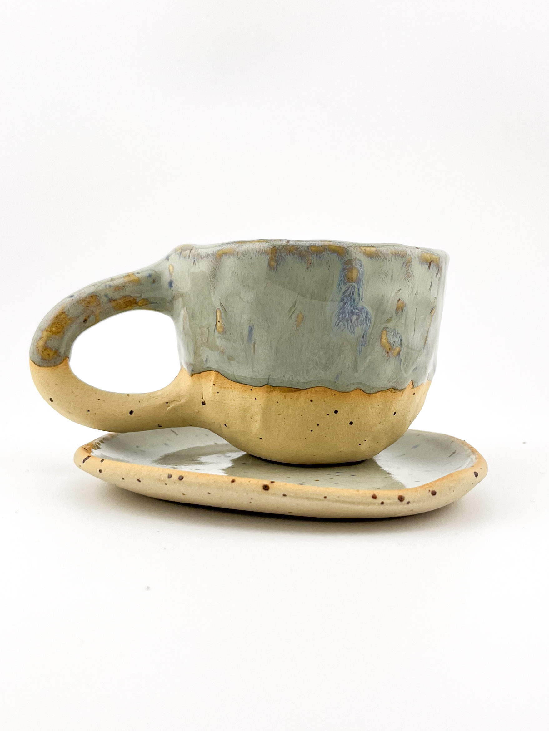 Ręcznie robiony kubek ceramiczny 110ml plus talerzyk