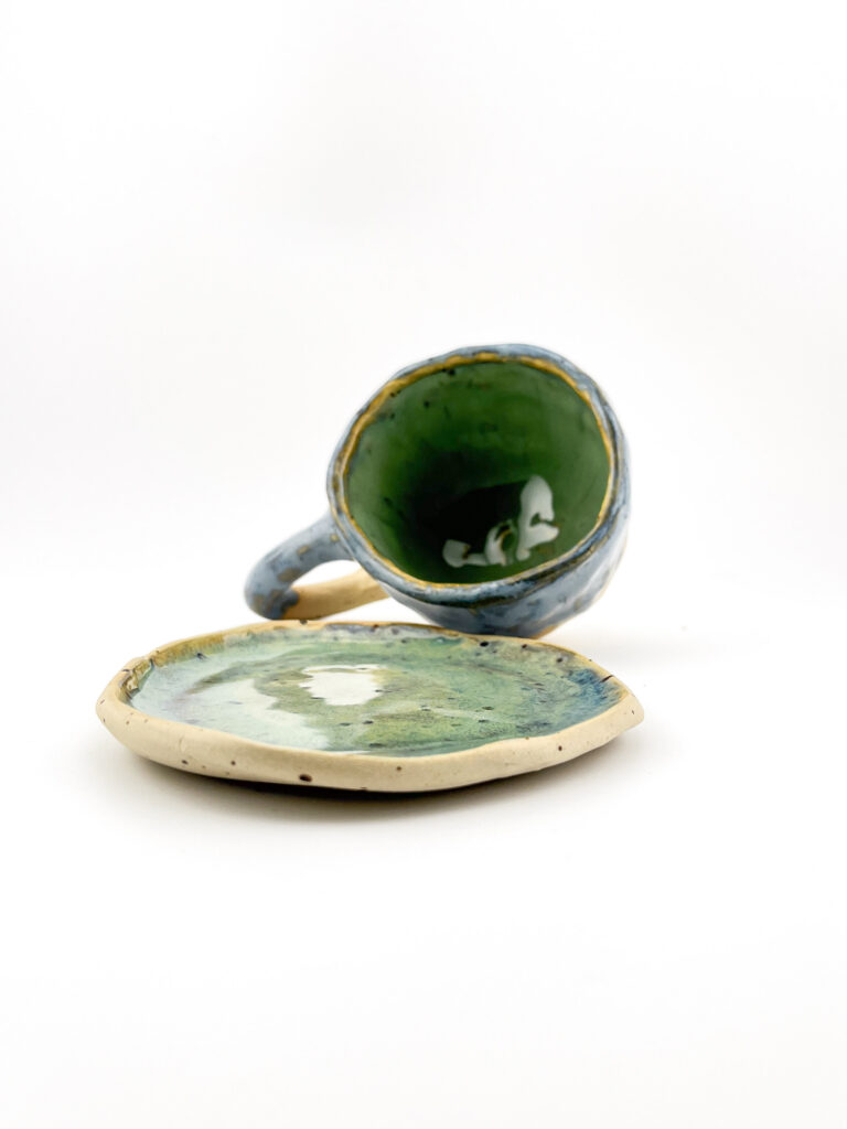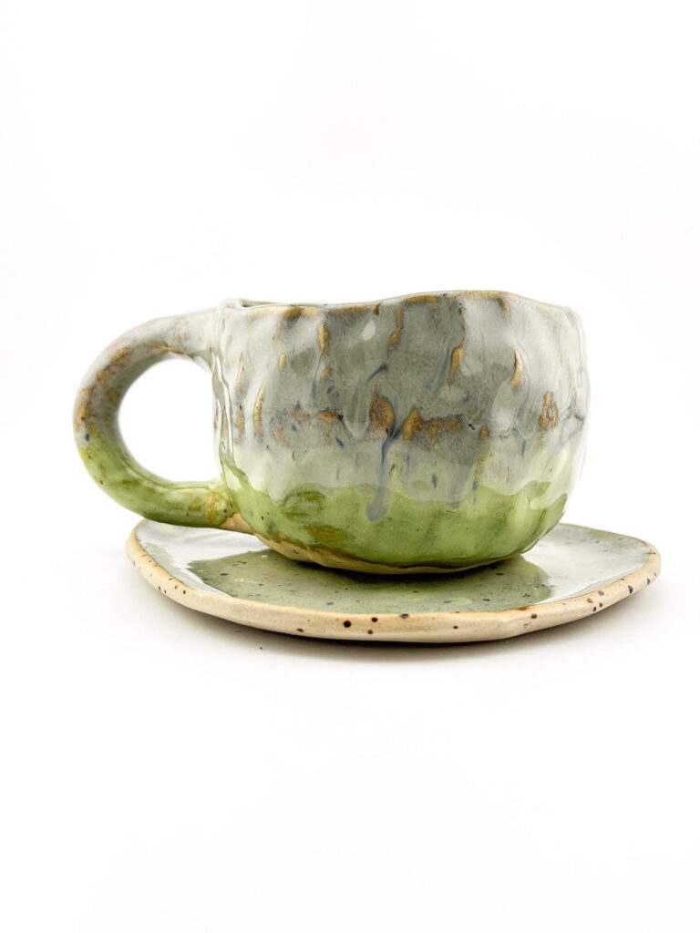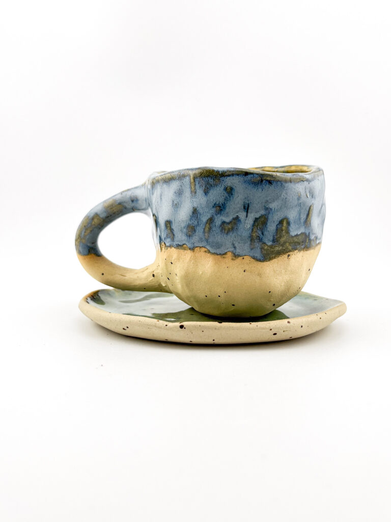Ręcznie robiony kubek ceramiczny 110ml plus talerzyk